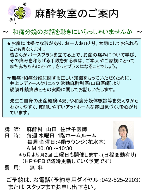 和痛分娩のお話を聴きにいらっしゃいませんか?